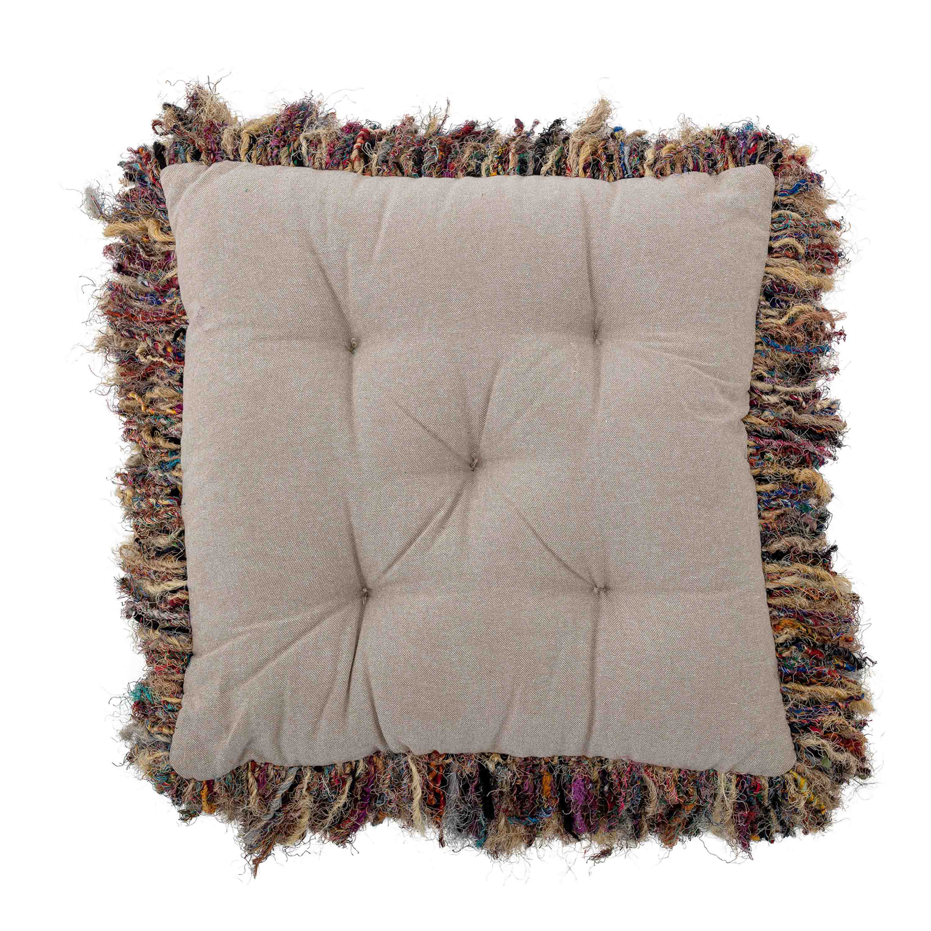 Das Darko Kissen von Bloomingville hat einen wunderschönen Druck in Natur-Erdtönen, der Ihrem Sessel oder Sofa einen Hauch von Entspannung verleiht. Die quadratische Form des Kissens und die weichen Fransen ziehen alle Blicke auf sich.