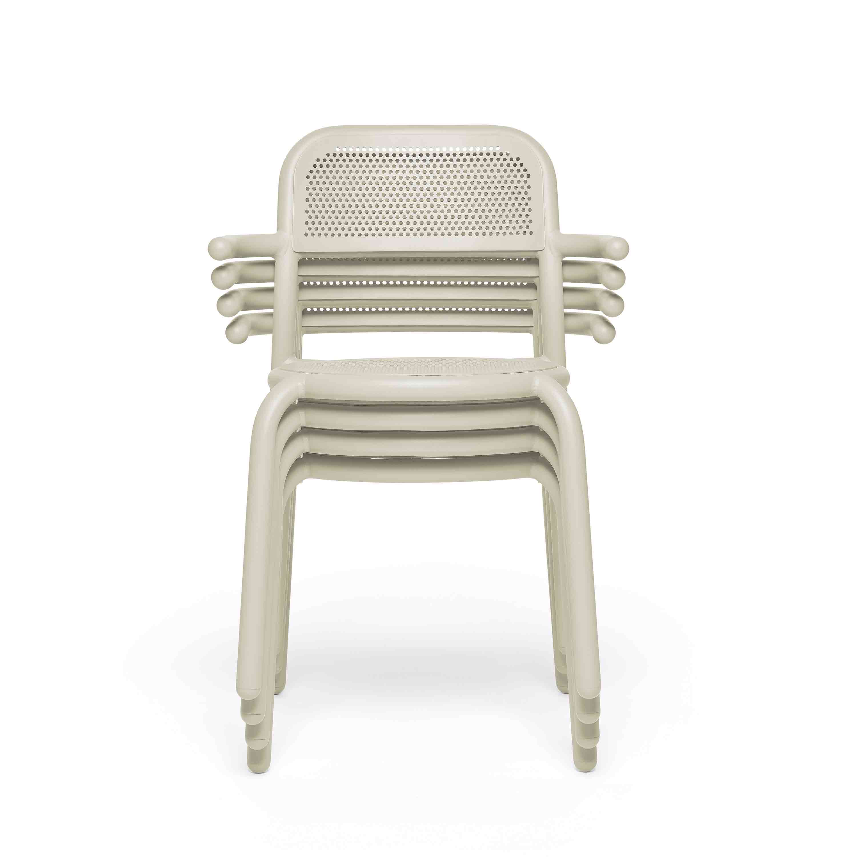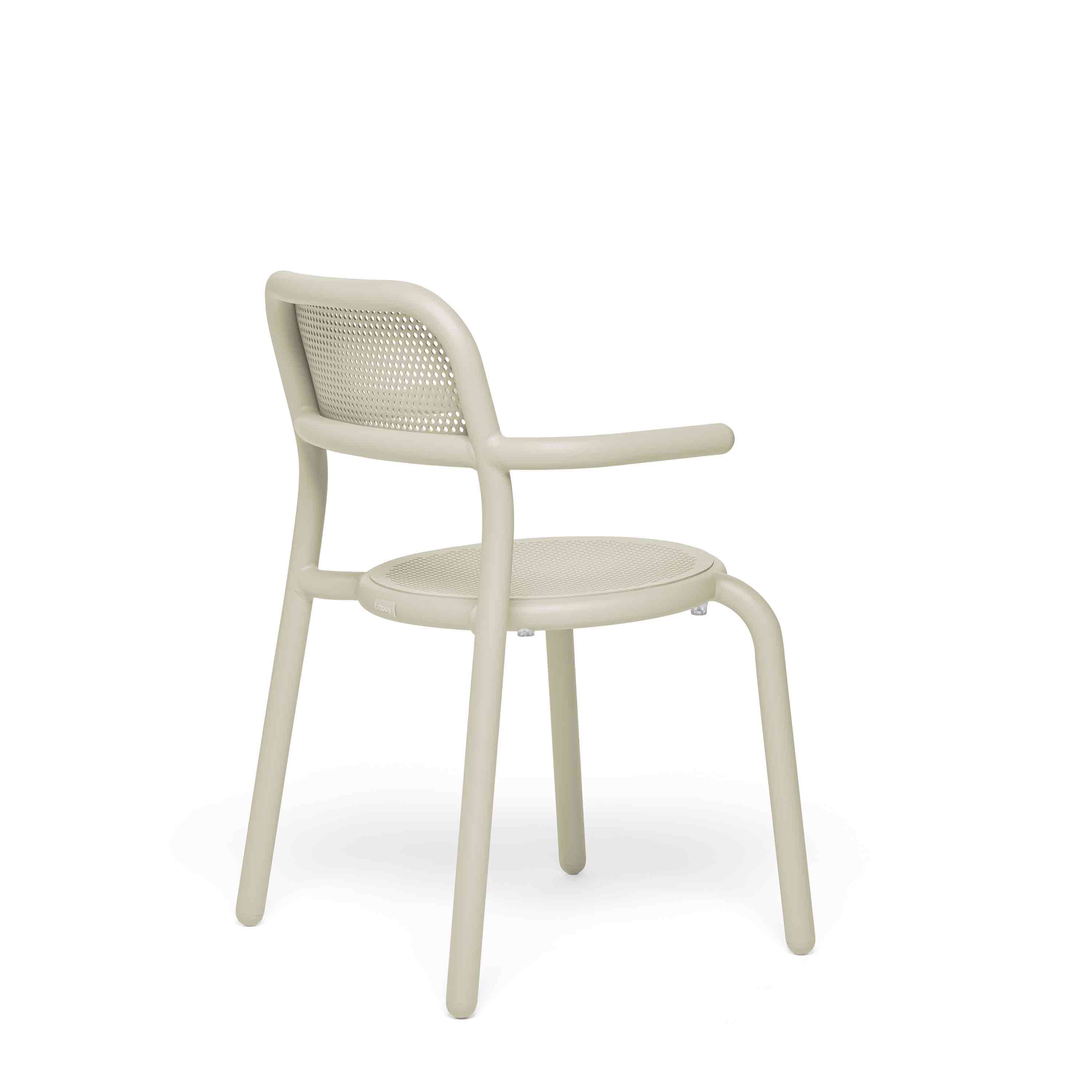 Toní Chair ist ein strapazierfähiger Gartenstuhl mit einer Anspielung auf den klassischen Bistrostuhl. Der Toní besteht aus hochwertigem Aluminium und ist mit einer hochwertigen Außenbeschichtung versehen. Er ist witterungsbeständig.Hebe den Toní Armchair an und entdecke, wie leicht er ist. Praktisch, da man problemlos bis zu vier Stühle stapeln kann.