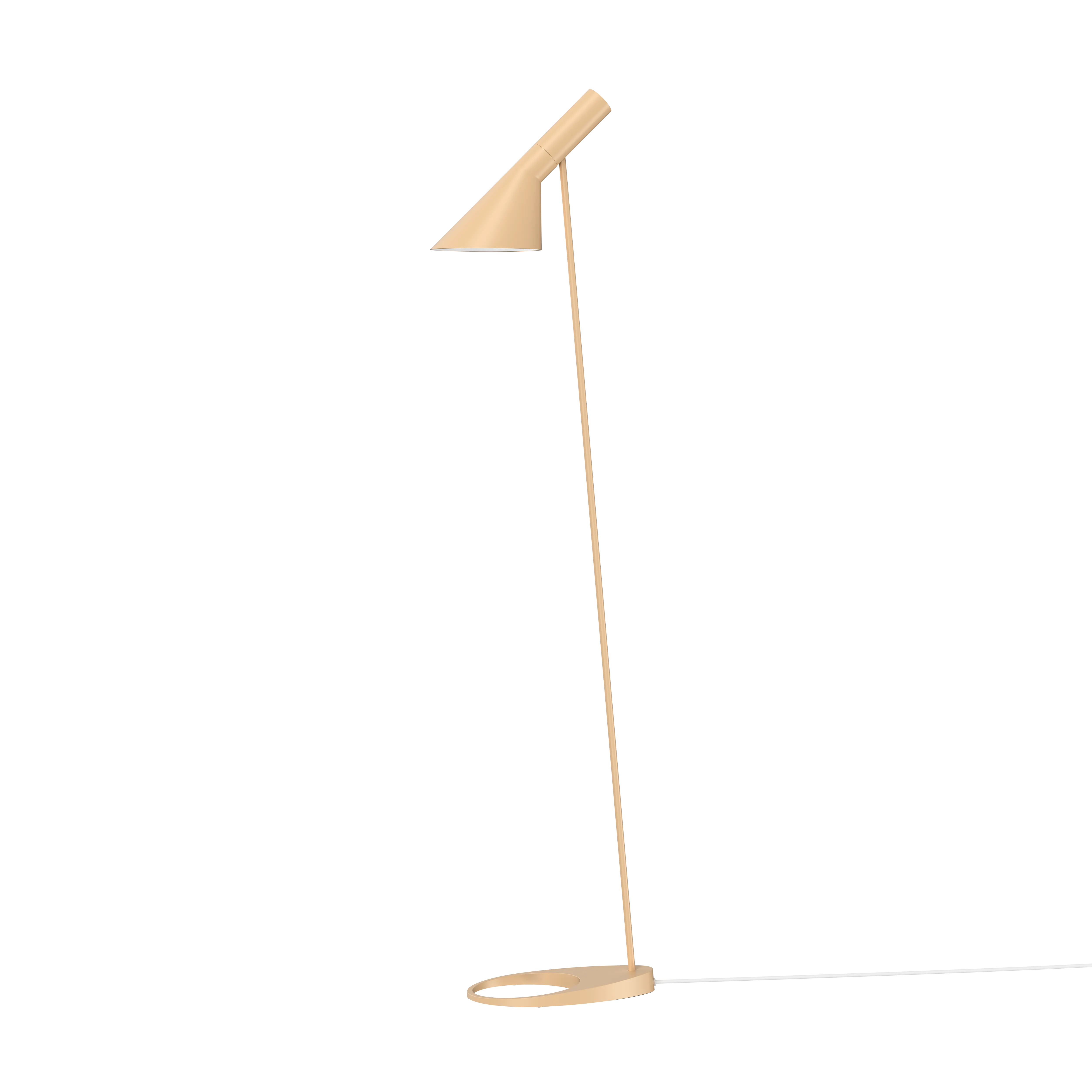 Die AJ Leuchte wurde 1957 für das SAS Royal Hotel in Kopenhagen entworfen und ist ein legendäres Design von Arne Jacobsen. Das Design ist grafisch und stilrein in seinem Ausdruck, was ihm einen zeitlosen Look verleiht, der sich für verschiedene Farbtöne entsprechend den modernen Einrichtungstrends eignet. Die AJ Stehleuchte sorgt für ein nach unten gerichtetes Licht. Die Neigung des Schirms kann an die Bedürfnisse der Anwender angepasst werden. Der Schirm ist auf der Innenseite weiß lackiert, wodurch ein gleichmäßiges, weiches Licht erz