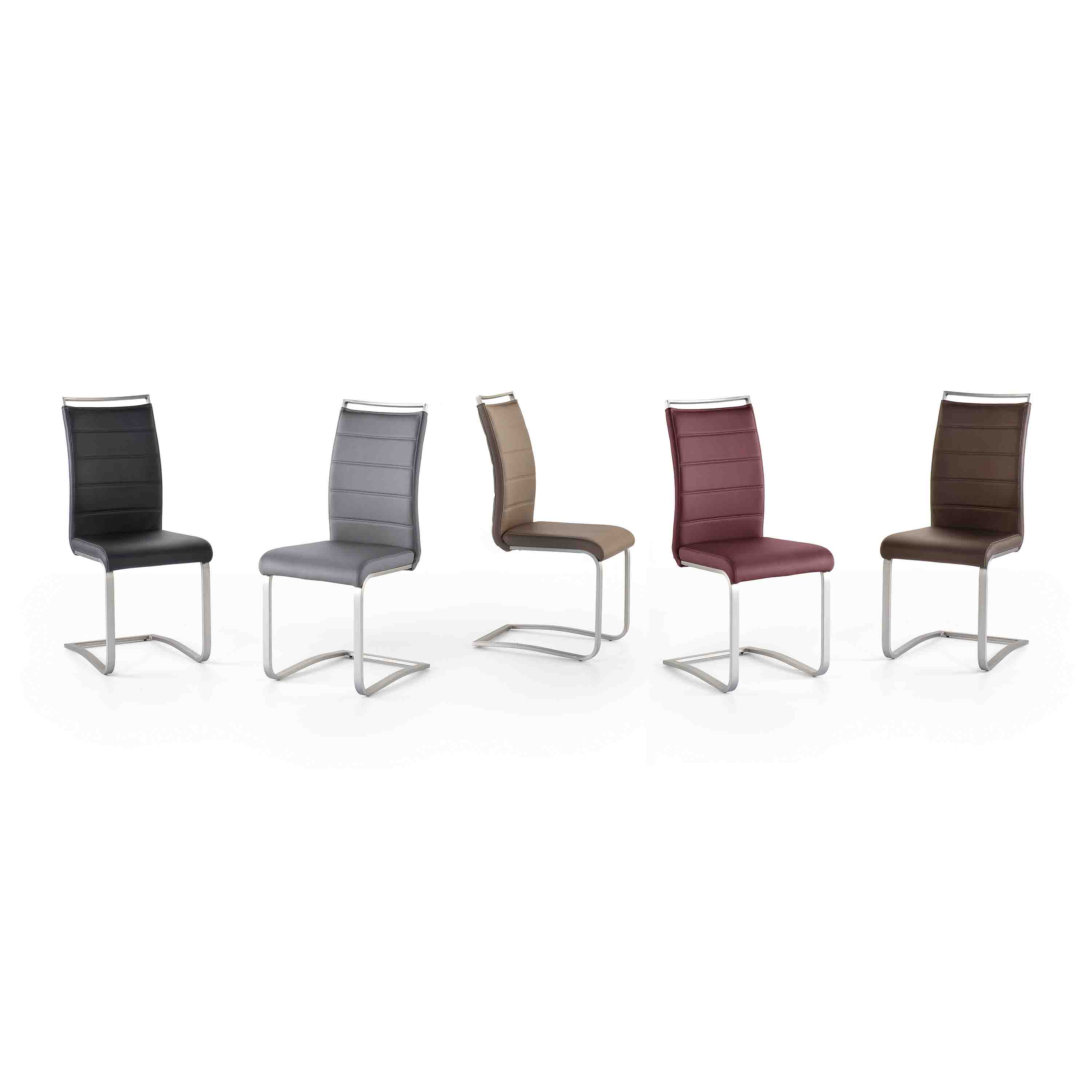 Esszimmerstühle 2er-Set mit pflegeleichten Kunstlederbezug und Kontrastnaht in creme. Gestell Flachrohr in Edelstahl gebürstet 40x15mm. Nettogewicht ca. 9 kg. Stuhl mit Griffleiste für einfaches Handling. Stuhl belastbar bis maximal 120 kg. Sitzmaße BxHxT 43x49x46 cm, Stellmaß BxHxT 42x102x56 cm. Mit Steppung in der Rückenlehne. Die Lieferung erfolgt zerlegt inkl. Aufbauanleitung