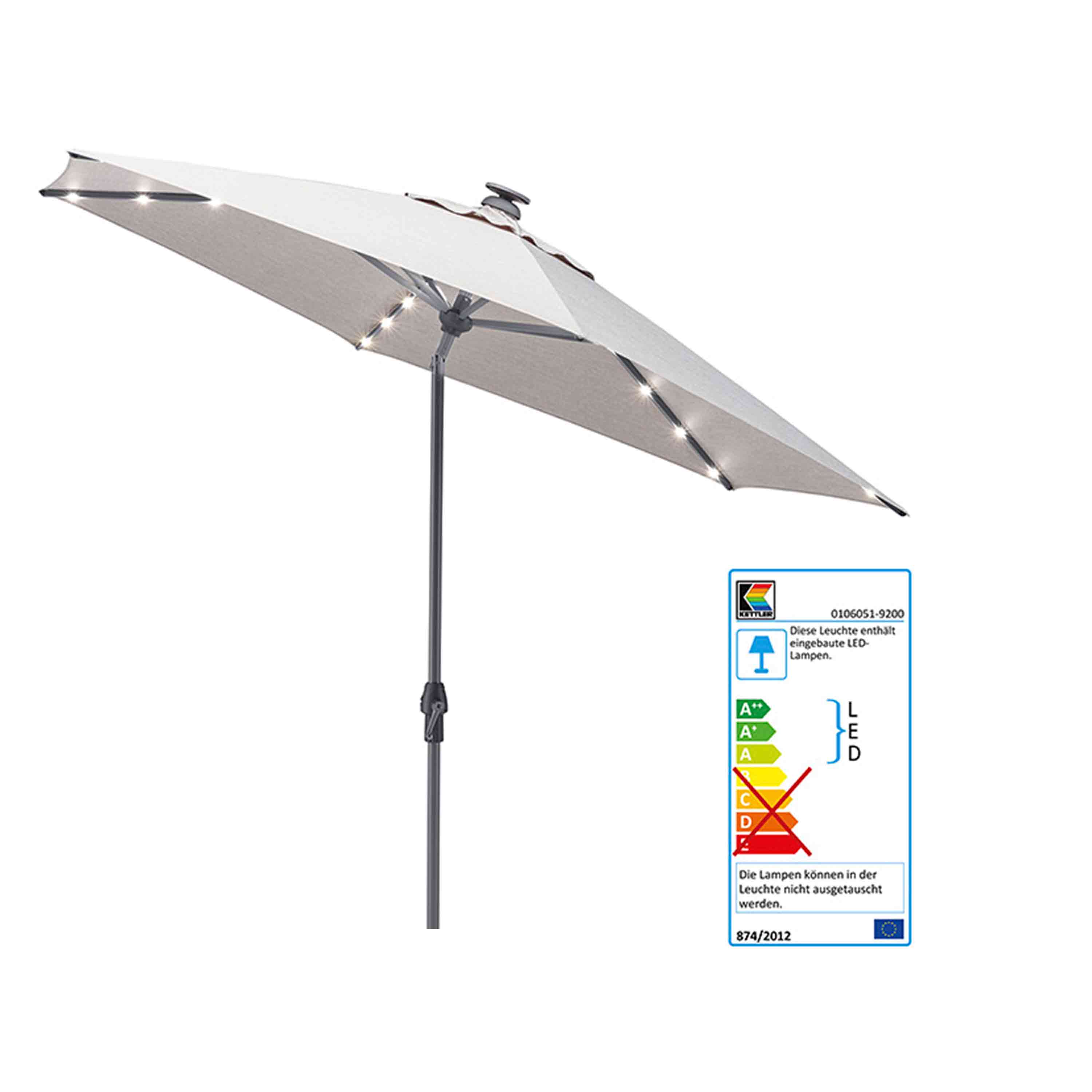 Produktinformationen "Kettler Sonnenschirm Easy Allround LED Kurbelschirm Ø 300 cm Anthrazit/Hellgrau Meliert"