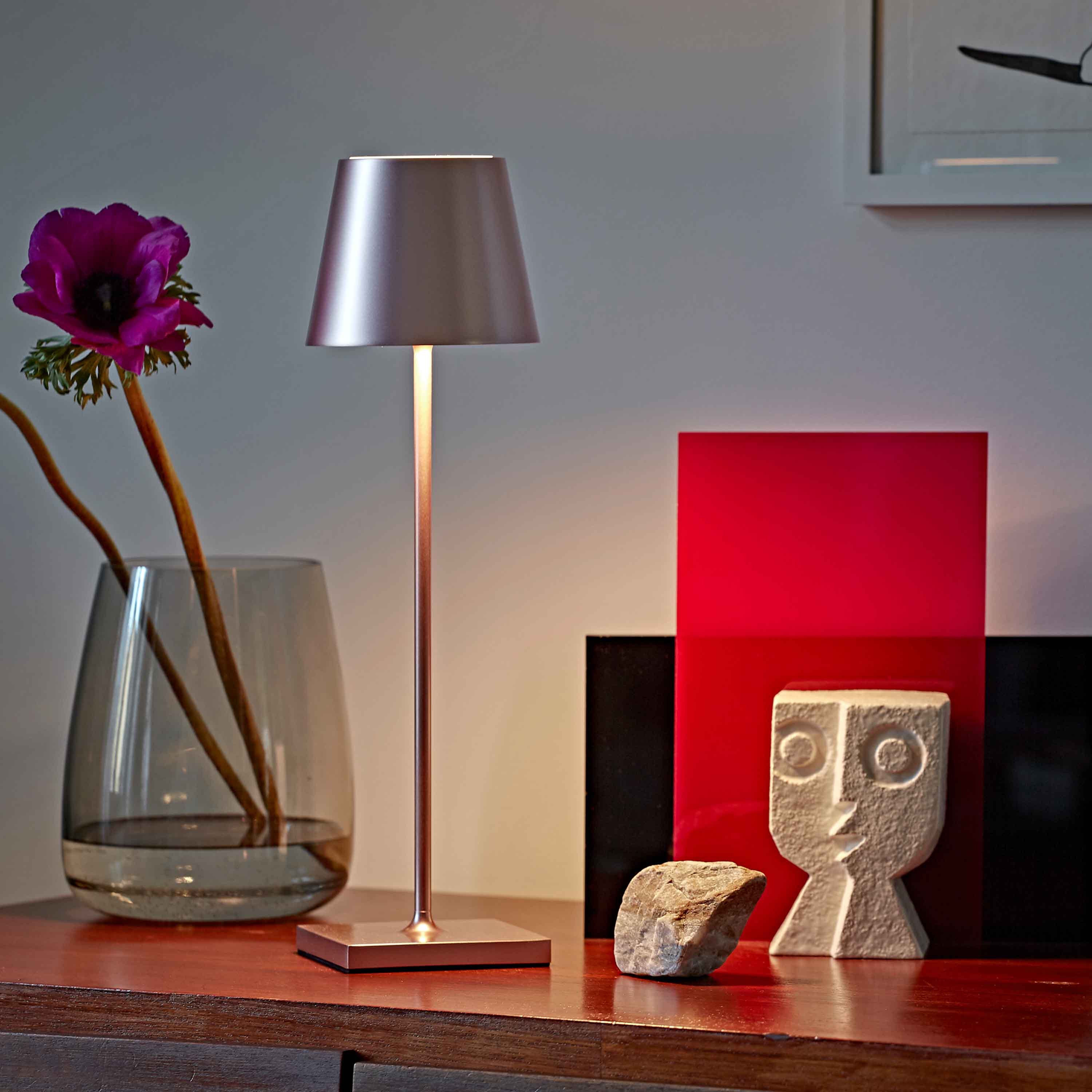 Stilvoll & Individuell: Der einzigartige Lampenschirm der Nuindie Tischleuchte sorgt im Wohnzimmer, Schlafzimmer oder Esszimmer für eine blendfreie Ausleuchtung auf den Tisch und angenehmes Akzentlicht nach oben. So vereint die Nuindie zeitloses Design mit modernster, kabelloser LED-Technik.Innen & Außen: Die dimmbare Akku-Tischleuchte für den Wohn- und Außenbereich hält dank Schutzklasse IP54 (spritzwassergeschützt) auch Regenschauer aus.Wiederaufladbar: Mit dem beiliegenden USB-Netzteil und dem 1,2 m langen Ladekabel mit magnetischem Easy Connect-Stecker lässt sich die Akkuleuchte bequem und unkompliziert aufladen. So leuchtet sie bis zu 12 Stunden und das ganz ohne Kabel (Akku Li-Ion, 4.400 mAh).Einfache Bedienung: Die Leuchte lässt sich ganz einfach und intuitiv über den Touch-Schalter ein- und ausschalten sowie dimmen. Durch ihr hohes Eigengewicht (˜ 1 kg) hat sie einen soliden Stand.Stimmungsvoll: Das FlexMood-Feature bietet über den Touch-Dimmer warmweißes und blendfreies Licht in zwei Farbtemperaturen (2.700 K und 2.200 K). So verbreitet sie jederzeit die passende Lichtatmosphäre - auch als Nachttisch- oder Leselampe.Zusatzinformation: Material/Oberfläche: Aluminium pulverbeschichtet für den Außenbereich, Ladezeit = 5 - 7 h