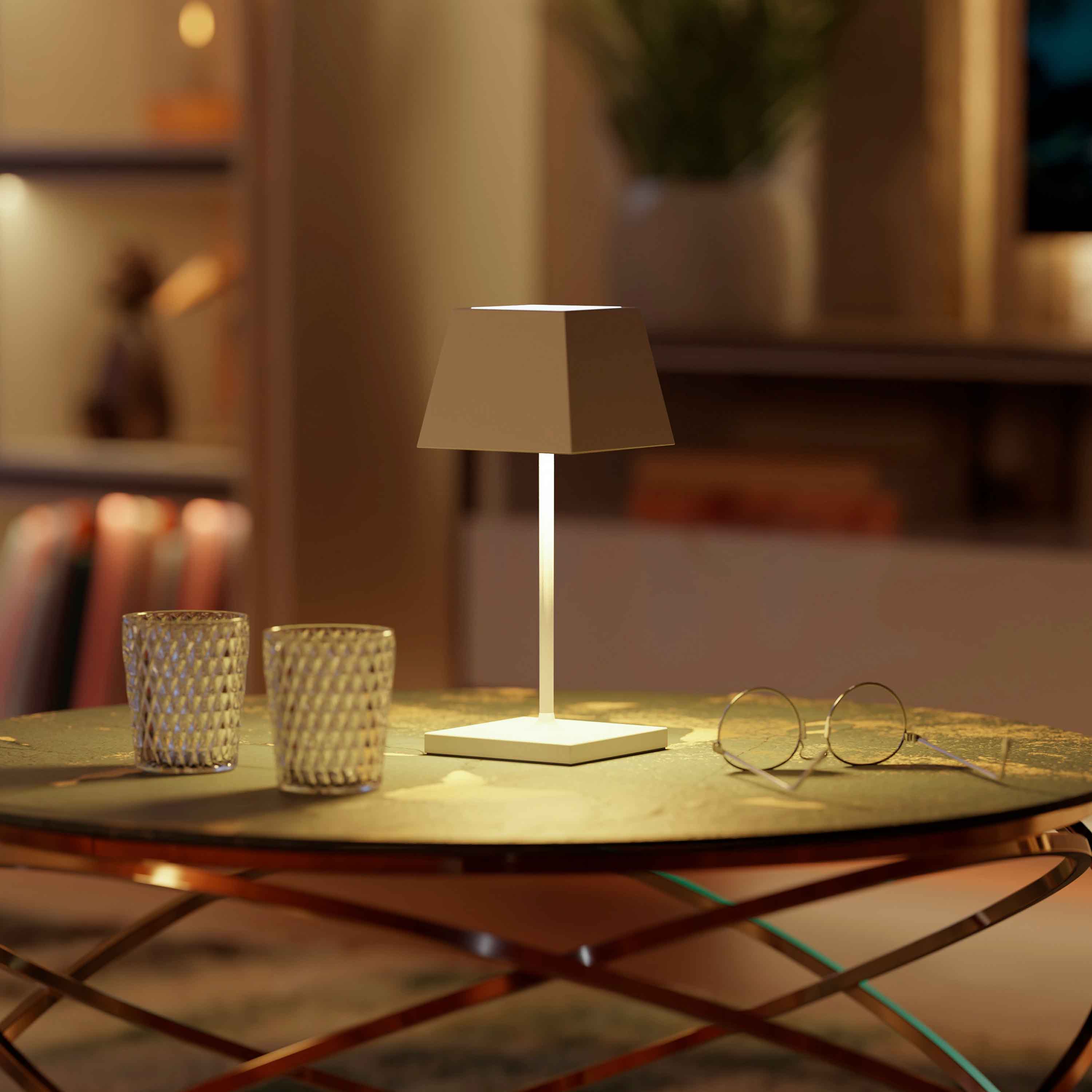 - Stilvoll & Individuell: Der einzigartige Lampenschirm der Nuindie Tischleuchte eckig sorgt im Wohnzimmer, Schlafzimmer oder Esszimmer für eine blendfreie Ausleuchtung auf den Tisch und angenehmes Akzentlicht nach oben. So vereint die Nuindie zeitloses Design mit modernster, kabelloser LED-Technik.- Innen & Außen: Die dimmbare Akku-Tischleuchte für den Wohn- und Außenbereich hält dank Schutzklasse IP54 (spritzwassergeschützt) auch Regenschauer aus.- Wiederaufladbar: Mit dem beiliegenden USB-Netzteil und dem 1,2 m langen Ladekabel mit magnetischem Easy Connect-Stecker lässt sich die Akkuleuchte bequem und unkompliziert aufladen. So leuchtet sie bis zu 12 Stunden und das ganz ohne Kabel (Akku Li-Ion, 4.400 mAh).- Einfache Bedienung: Die Leuchte lässt sich ganz einfach und intuitiv über den Touch-Schalter ein- und ausschalten sowie dimmen. Durch ihr hohes Eigengewicht (˜ 1 kg) hat sie einen soliden Stand.- Stimmungsvoll:Das FlexMood-Feature bietet über den Touch-Dimmer warmweißes und blendfreies Licht in zwei Farbtemperaturen (2.700 K und 2.200 K). So verbreitet sie jederzeit die passende Lichtatmosphäre - auch als Nachttisch- oder Leselampe.- Zusatzinformation: Material/Oberfläche: Aluminium pulverbeschichtet für den Außenbereich, Ladezeit = 5 - 7 hHerstellerfarbe:SchneeweißSchutzart:IP 54Schutzklasse:IIHöhe:38 cmBreite:11 cmTiefe:11 cmGewicht:2.0000 kg